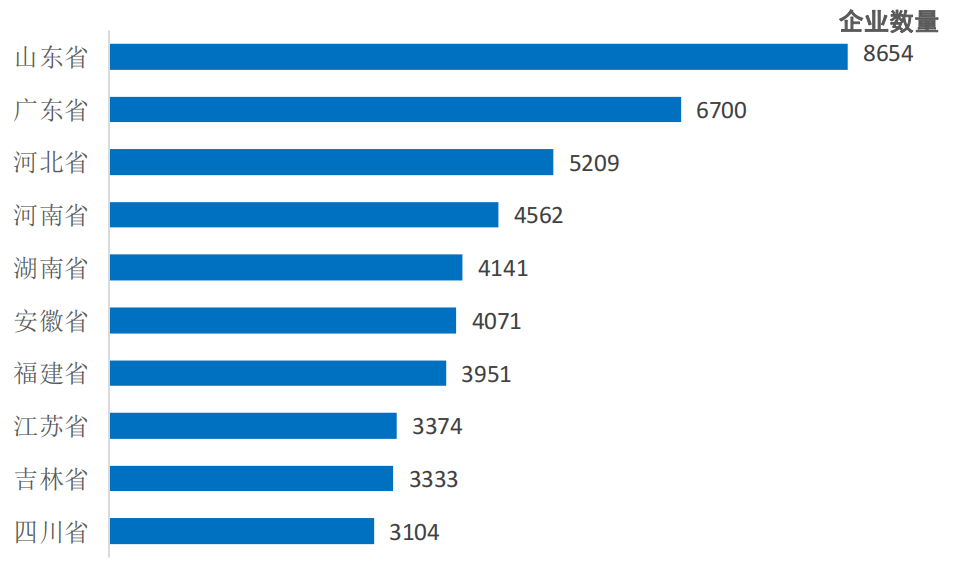 截至2022年12月31日,山东具有预制菜相关企业位居全国第一,达8000余家,占比11。4%。其次是广东,约6700家预制菜相关企业。