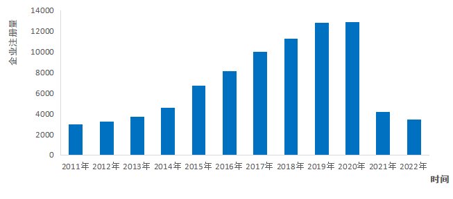 图2-3 2013-2022中国预制菜相关企业注册量 (图表数据来自迈点研究院《2022年中国预制菜财产成长演讲》和艾媒征询《2022年中国预制菜财产成长》)。