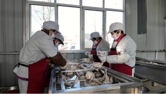 近日,正在山东新泰市新甫街道的山东三妮食物无限公司成品库内,两万多只实空包拆的烧鸡和风干鸡划一码放,分发着醇厚卤喷鼻,为春节市场备脚了货。车间里,工人们正杂乱无章地处置原料,空气中洋溢着熟悉的卤料取肉喷鼻。